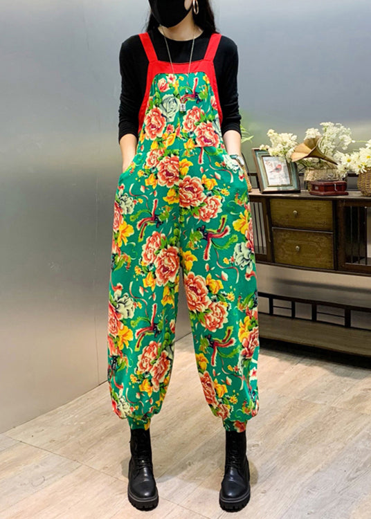 New Green Print Patchwork Cotton Jumpsuit Sleeveless